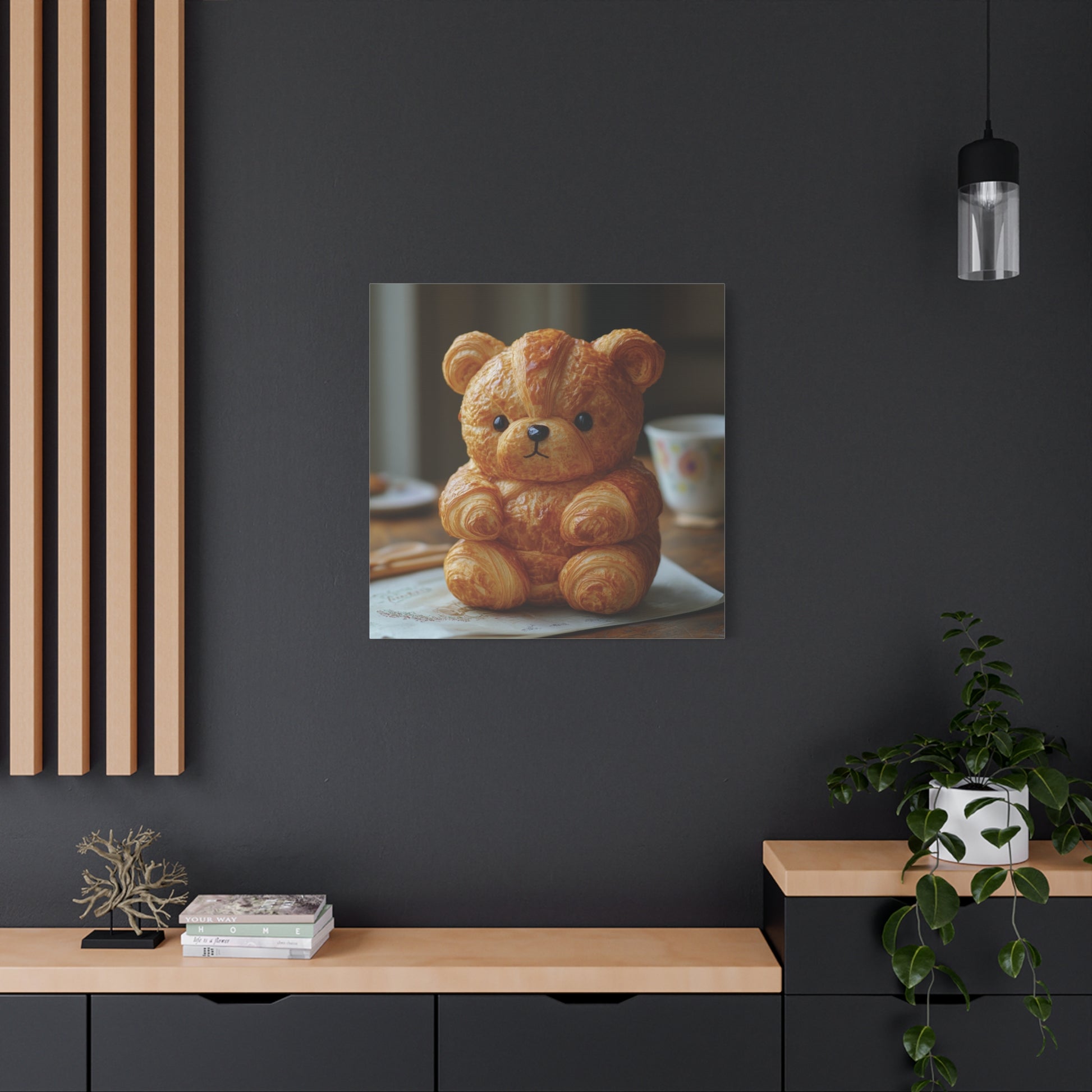 Transform your space with this adorable Canvas Print featuring an irresistibly cute bear-shaped croissant. This vibrant and whimsical piece adds a playful touch to any room, making it perfect for children’s nurseries, playrooms, or cozy kitchens. Ideal for those who appreciate quirky art and have a love for pastries, this canvas fits seamlessly into casual and cheerful home environments. Great for celebrating food lovers or as a delightful gift for birthdays, holidays, and special occasions, this print brings a warm, inviting atmosphere to your decor. The soft hues and charming design are sure to spark joy and conversations in any setting.